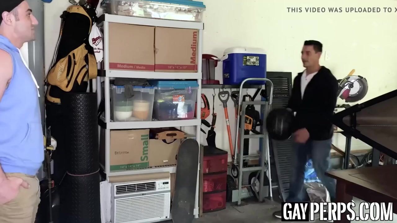 Handsome stud catches younger jock trying to steal and makes him give blowjob before bare drilling.