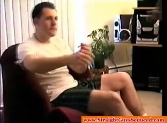 Amateur straightbait jock blown and wanked by dilf after he plays with himself