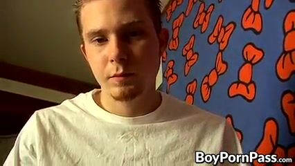 Inked lad pulls on his cock and keeps a glass of water nearby so he can drop a huge load inside of it when he is done.