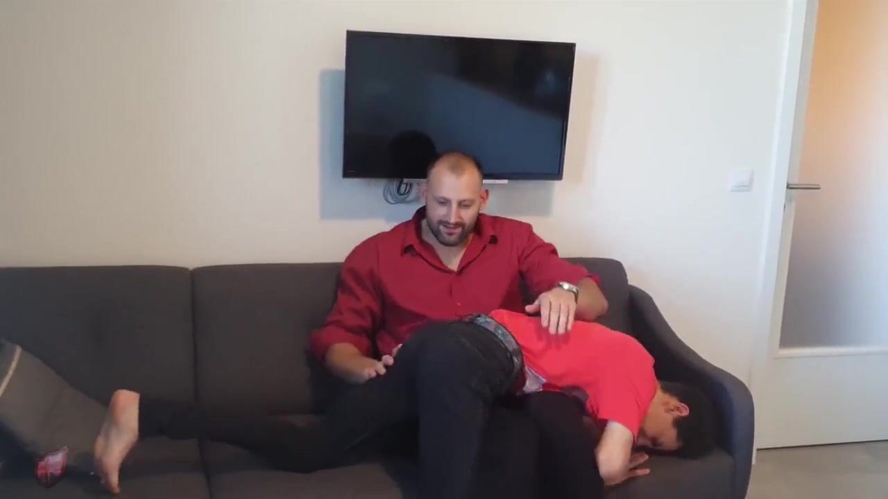 Dimitri calls Krystof in and gets him OTK for a well deserved spanking. Krystof looks good this time in black jeans. He looks even better when they are down.