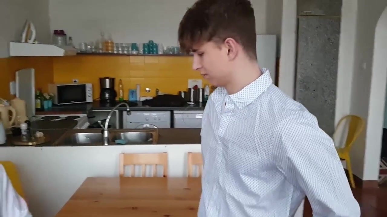 Called in and told to go OTK, Dominic looks a bit worried. Dimitri starts things off with a few hard swats on the jeans. He then grabs the ping pong bat to administer a paddling.