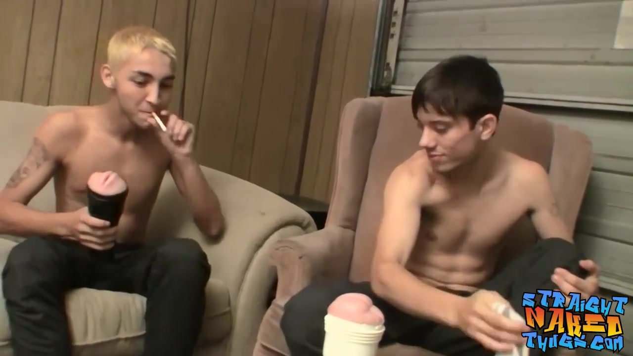 Twinky buddies toying their fat cocks with fleshlights