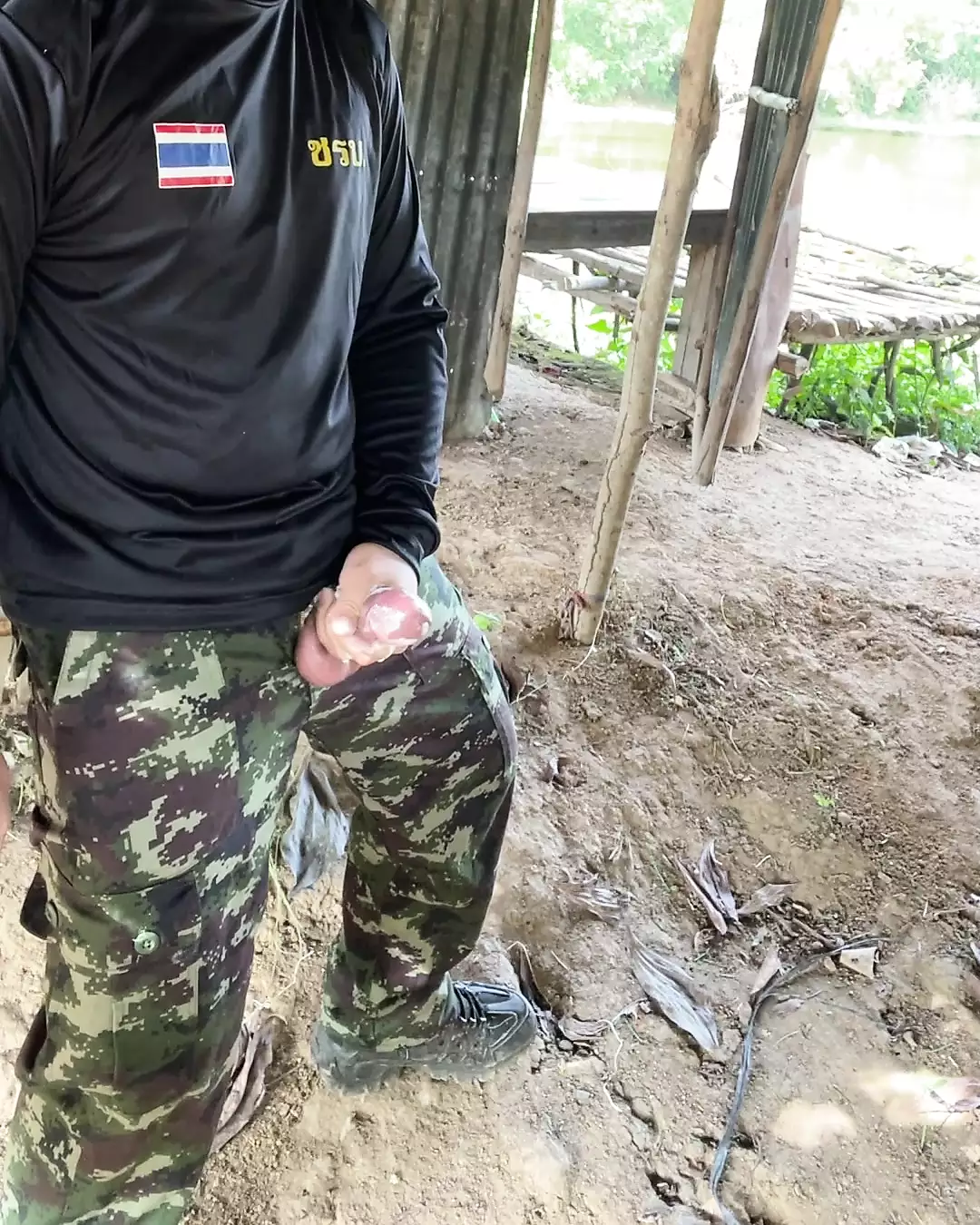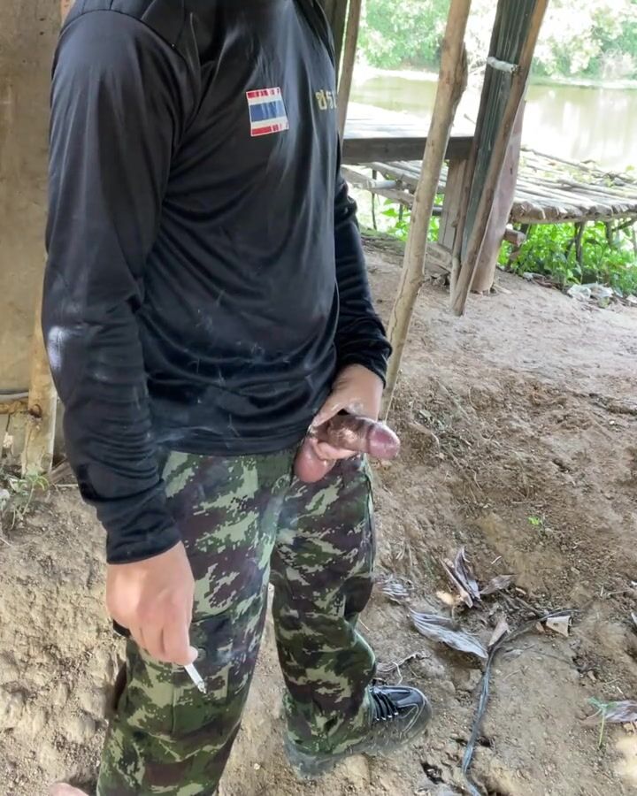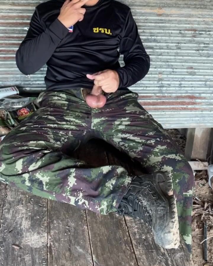 Military jerk off while smoking