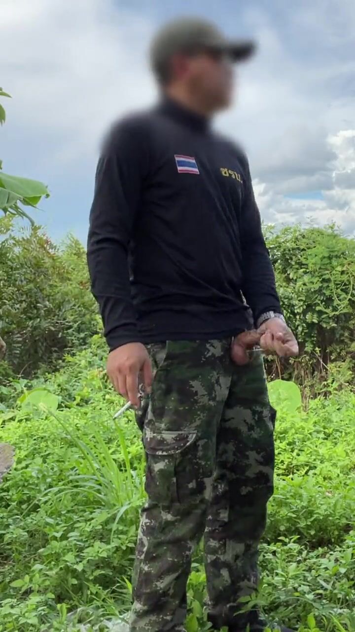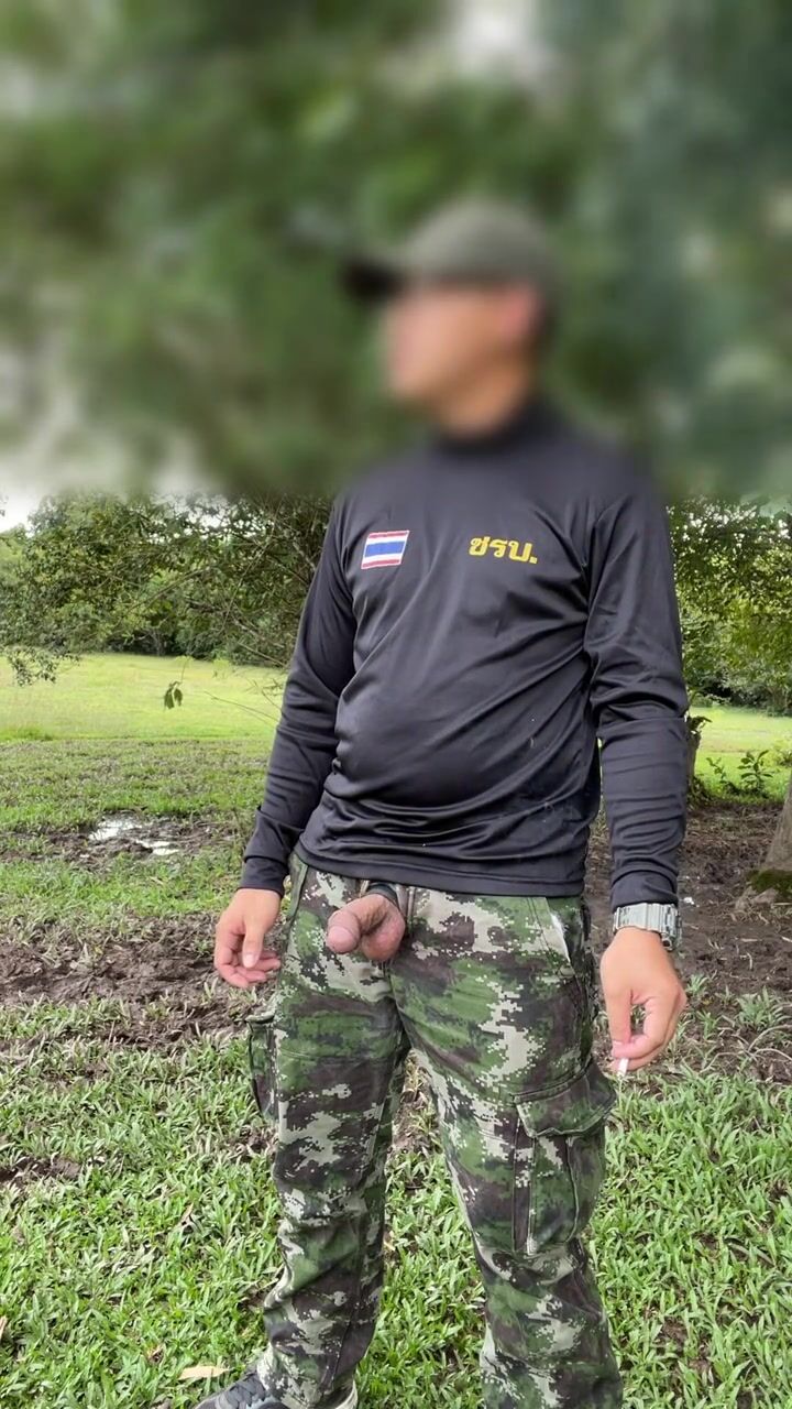 A soldier in the army jerk and cum