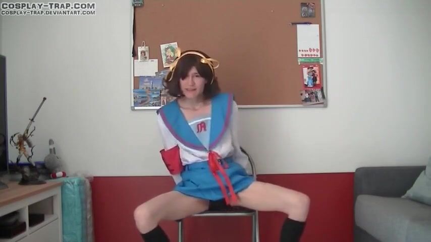 Crossdress cosplay Haruhi pleasure chair