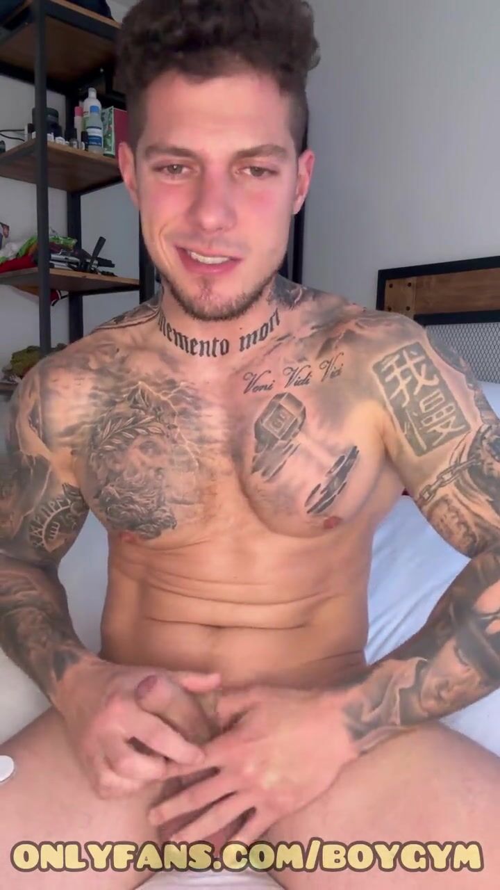Sexy Hunk Tattooed Playing with My Fat Cock and Hole