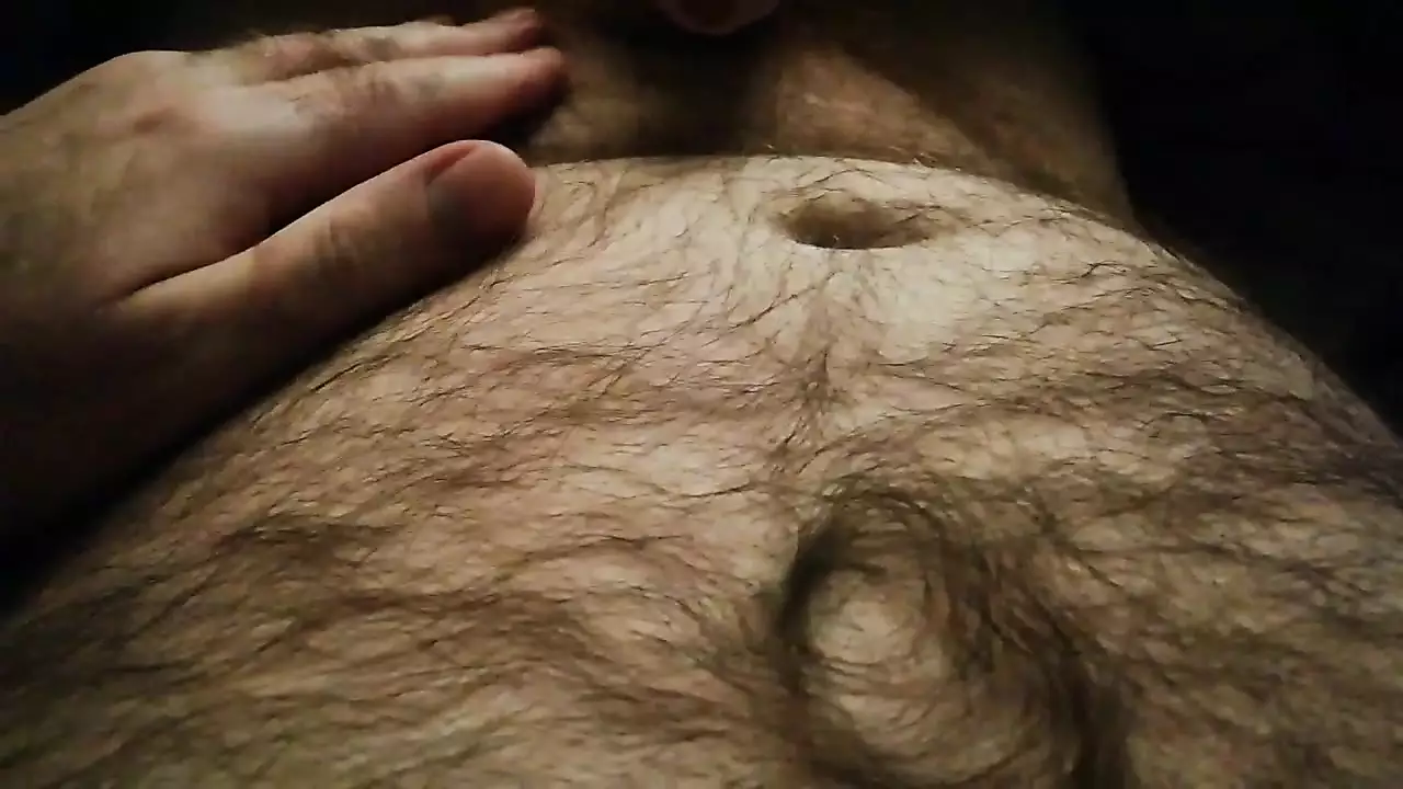 Hairy British Bear Stroking His Furry Belly and Bushy Cock