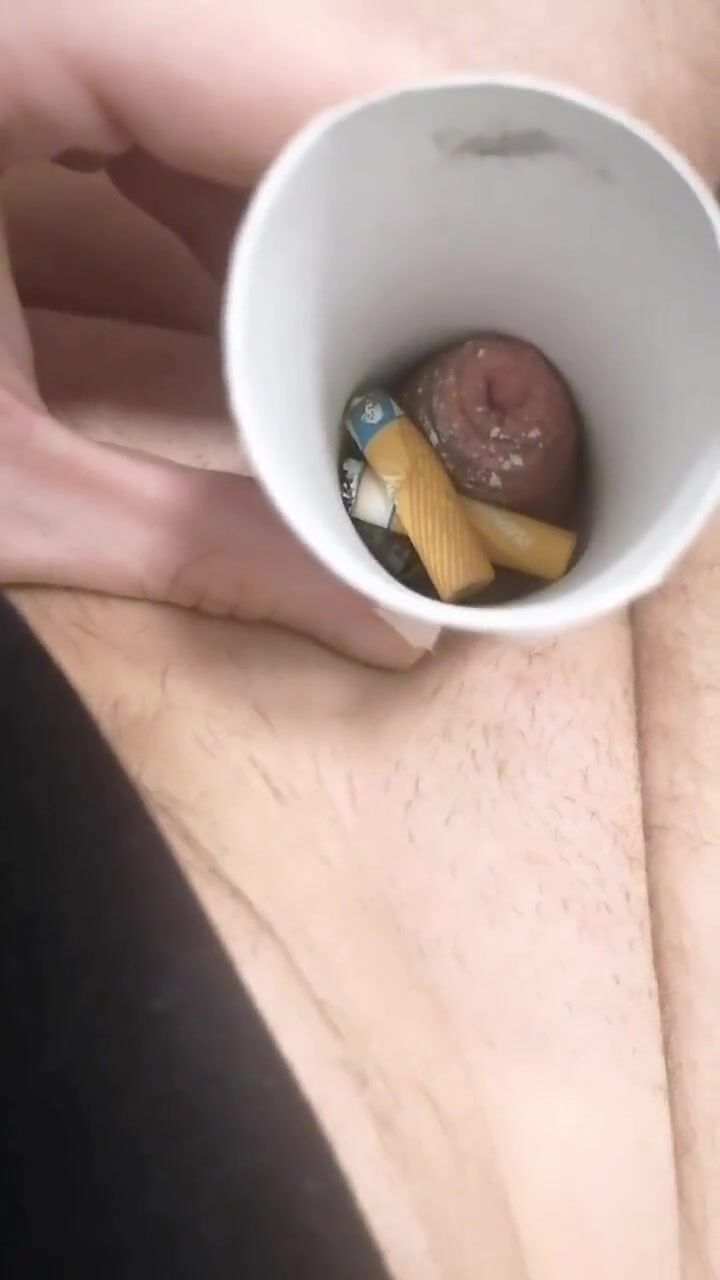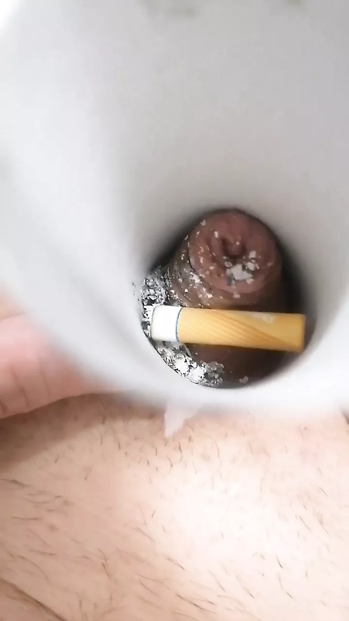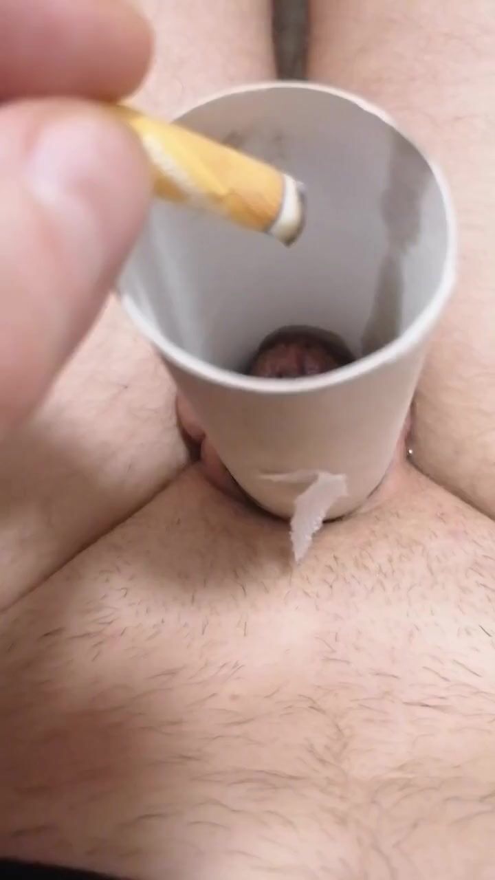 Small cock burning cigarette. Very painfull