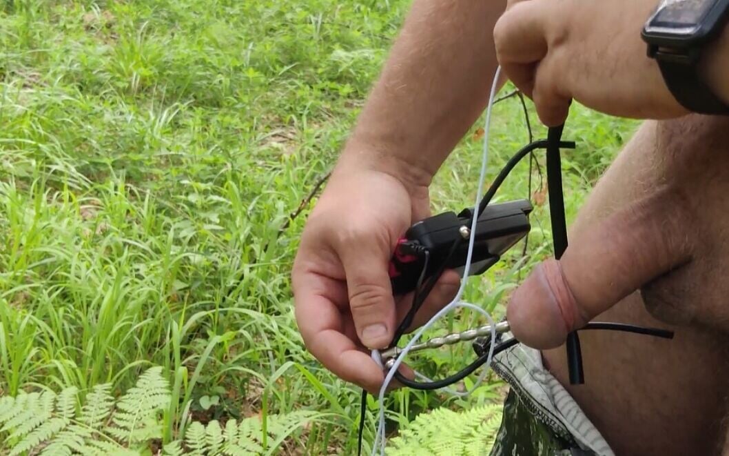 Alone in the Woods with the Punishment Equipment, Daddy Squirts the Electric Load.