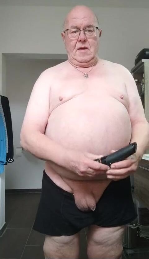 Description: Horny before dressing while shaving i played with my cock and tits. Changing trousers gave my belt the chance to dance on my back, ass and breasts.