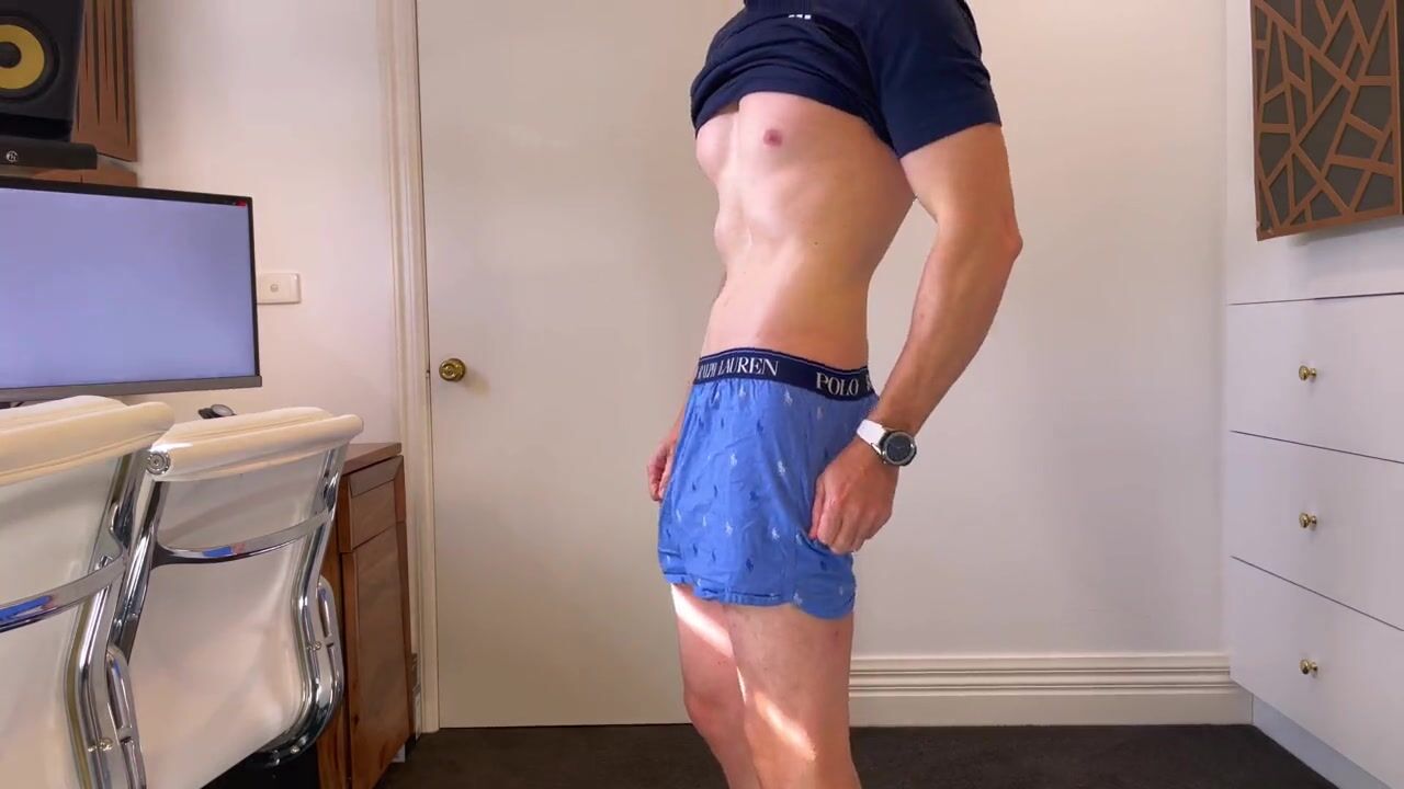 Skinny Muscle Boy Stripping out of underwear showing huge cock with cumshot end big dick bwc huge cock