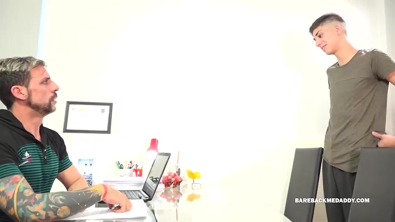 Young Latino Lance wants the job, and if that means playing with his hopefully future boss then that's exactly what he will do. It isn't long before the young man has daddy's cock in hand, and in no time he's on his knees giving the mature man a blow job. Eventually the skinny and smooth boy finds himself bent over the desk and getting his ass licked, before Joris slides in from behind and stars bareback fucking him. Then Lance takes a raw ride on that big cock, until Joris is ready to cum. On his hands and knees, young Lance waits for the cum facial, as his boss to be stands over him and strokes. A little ass-to-mouth takes the man over the edge and soon Lance is getting a taste of daddy cum.