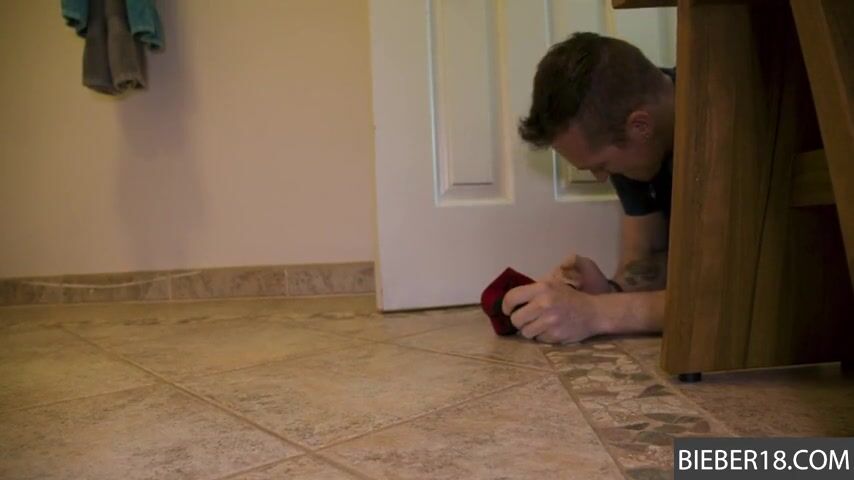 While muscular Carter Woods is washing off in the shower, best friend and roommate Jackson Cooper is crawling in with a mischievous smile on his face.