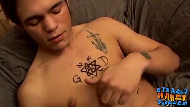 Tattooed straight thugs jerking off cock