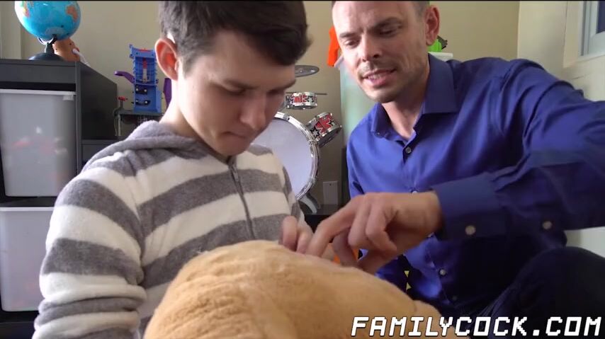 Innocent looking twink is joined by his stepfather who drills his ass doggy before making him ride him raw.