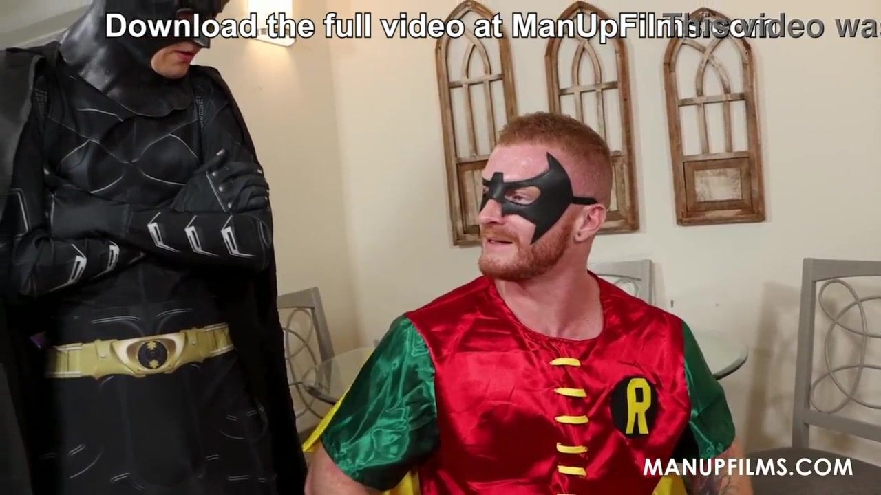 Horny batman Andy Adler wanks Brody Fox's cock on Man Up Films