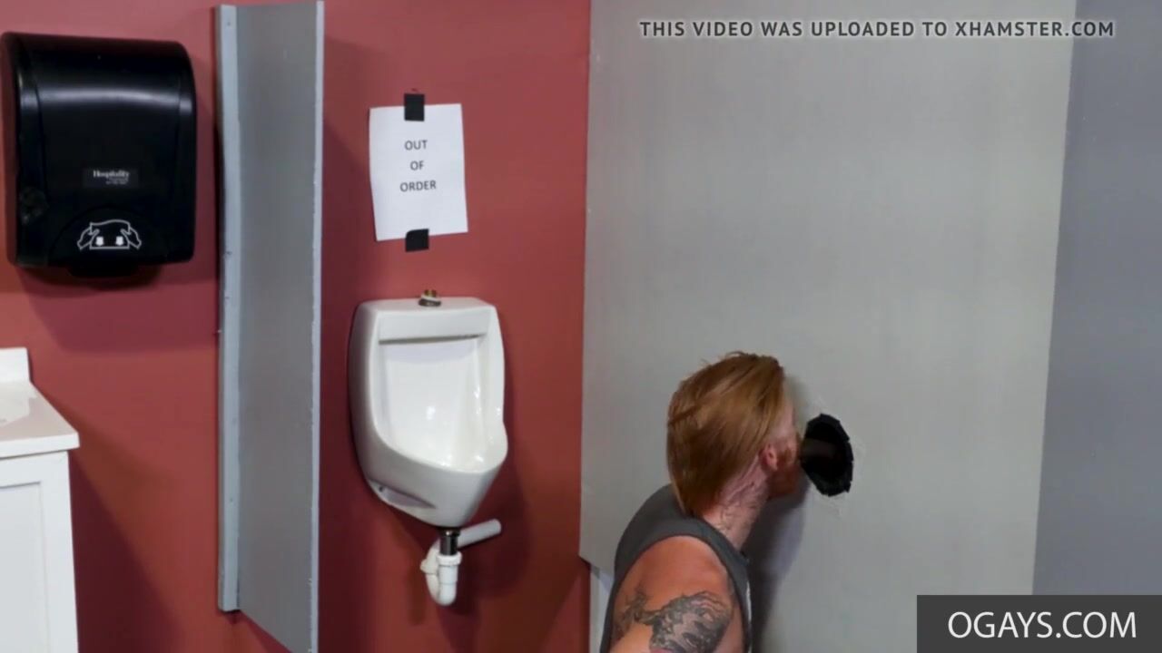 Aaron Trainer is waiting at his local gloryhole hoping someone will stop by. He strokes his big cock patiently waiting until Bennett Anthony shows up and begins sucking his bid dick.