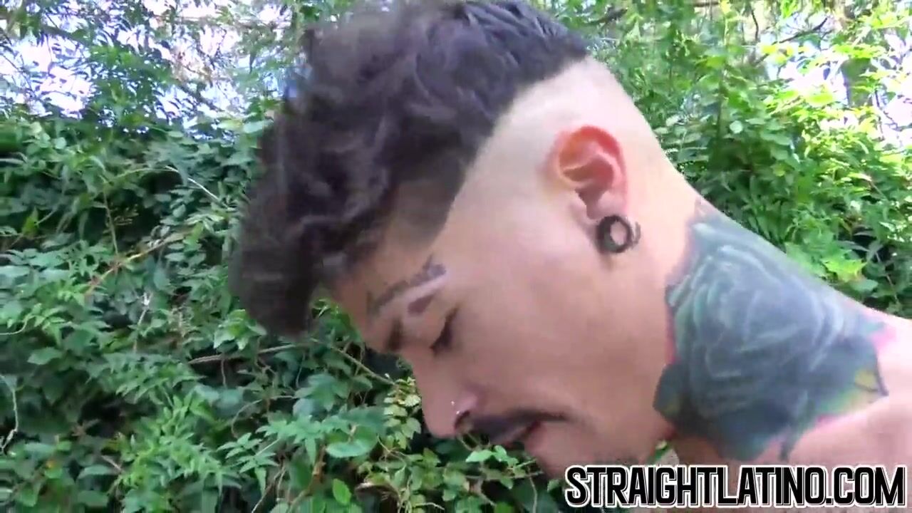 Tattooed Latino jock outdoor bareback hammered after blowjob