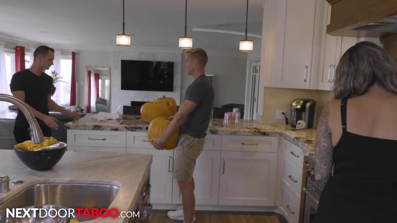 Step-Brother Jerked Inside Pumpkin Beside Girlfriend