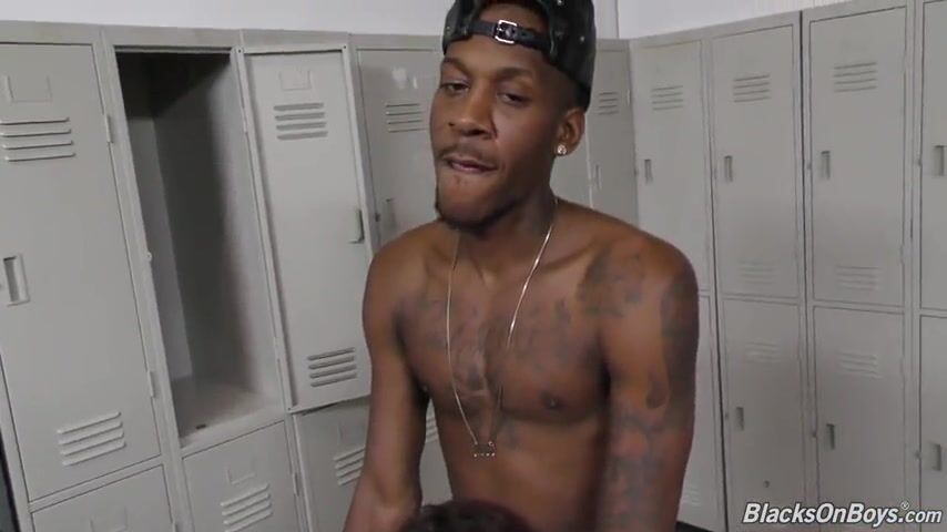 Bearded tattooed white man gets assfucked by a hung black man in the locker room
