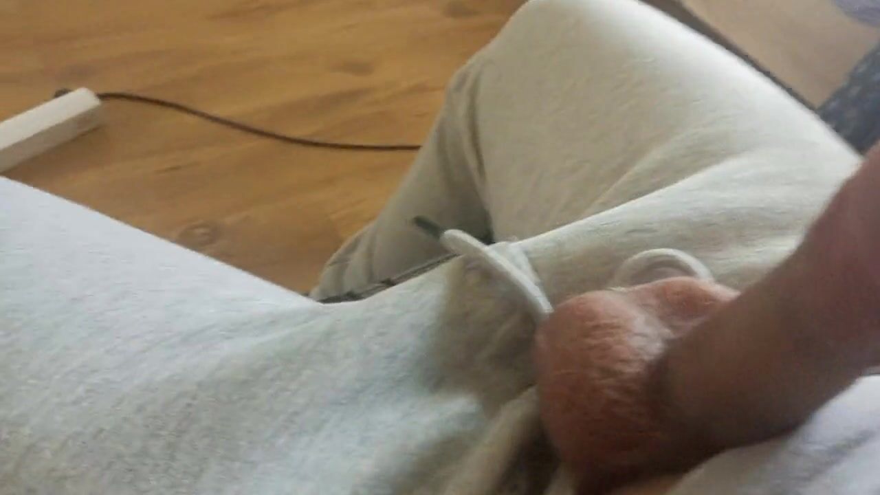 Andris is jerking off sitting on the sofa using dildo and cumming. Was almost caught by neighbor in flat.