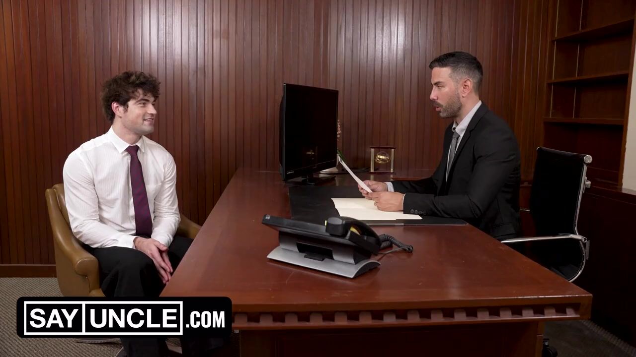 I went to a job interview today, and the first question my potential boss asked me was if I was aware that my position requires me to cater to any of his needs. For that, he needed to make sure I was submissive, so he put me to the test. He undressed me, moved his hand around my abs, and jerked off my cock until I was ready to suck his. Just as the position required, I followed all his instructions and took care of anything he needed, riding his big fat dick, letting him fuck my ass as hard as he wanted, and laying on his desk so that he could do anything he wanted to my body. Needless to say, I nailed the interview, and I'm ready to keep doing anything he wants me to do every day.