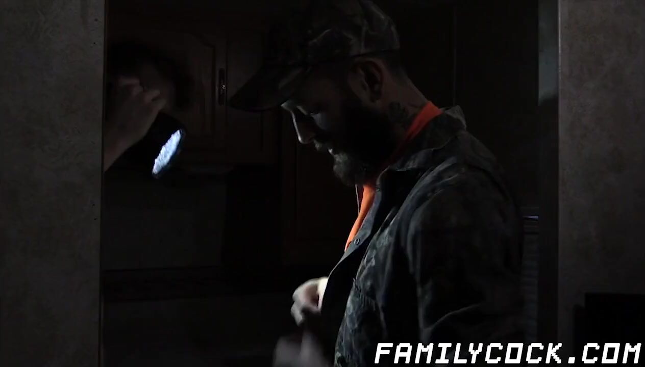Inked stepdad goes to sleep with his twink but wakes up to receive a blowjob and pound his ass raw.