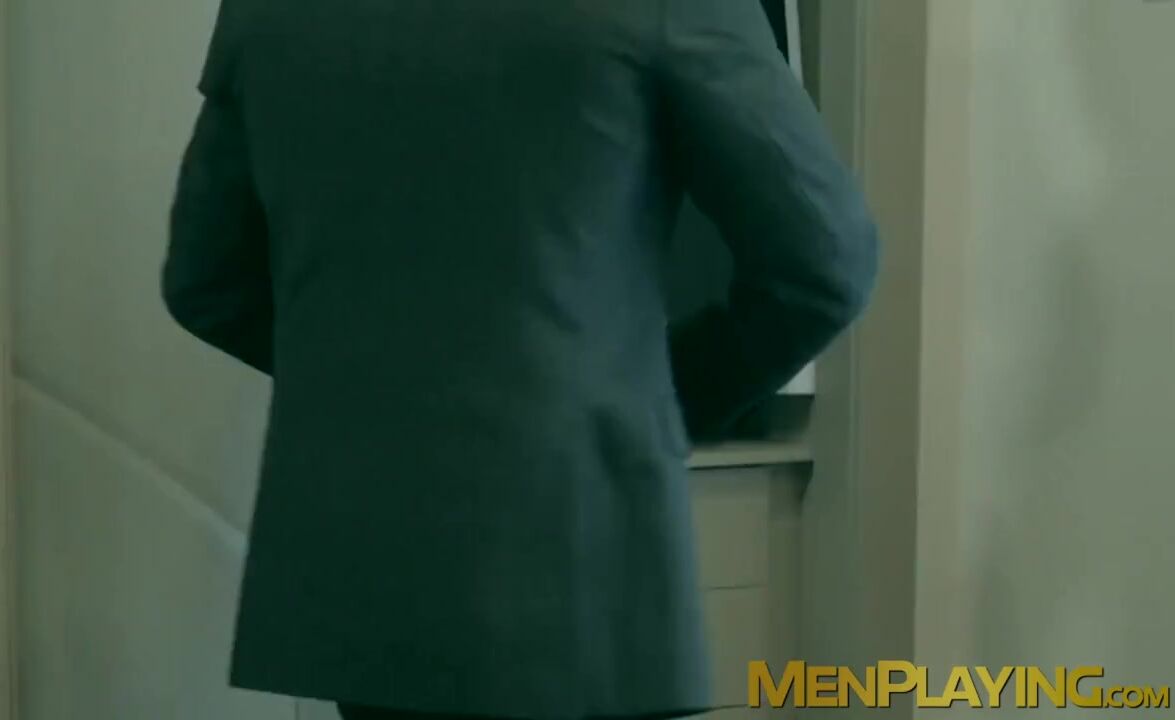 Executive in suit seduces his partner into giving long and wet blowjob before analriding his cock.