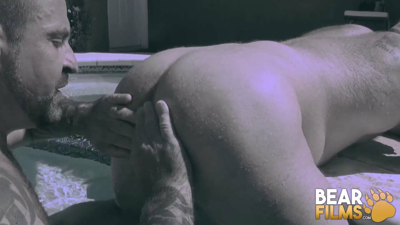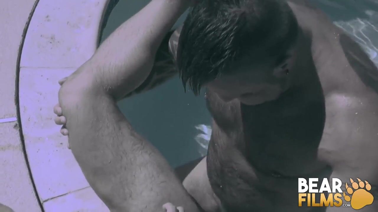 Two masculine bears Marc Angelo and Wadeca Shen are sucking each others dicks in the outdoor pool before wild anal breeding!