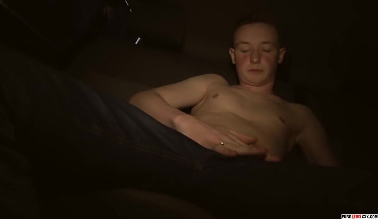 Horny teen twink Olly can’t help but jerk his uncut cock while riding a car! Watch him spurt his hot cream from his big teen dick with a helping hand!