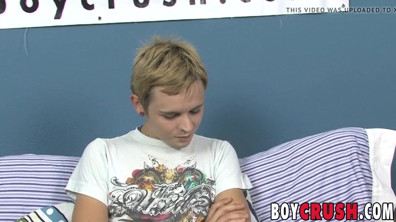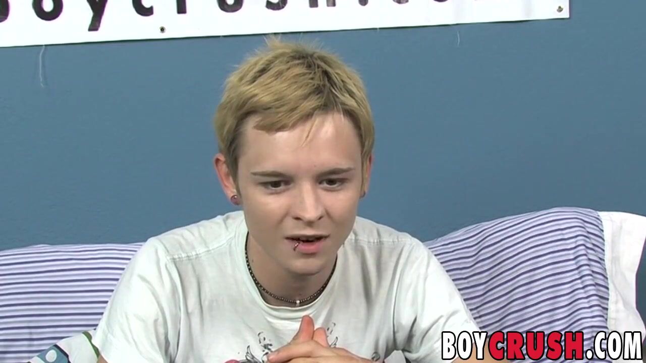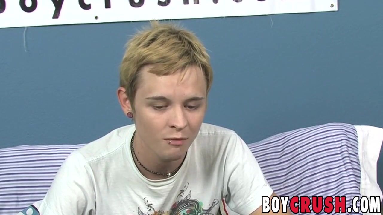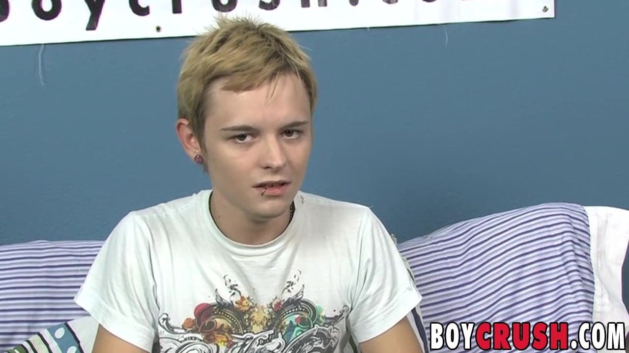 Blonde emo twink gets interviewed with good questions, and then he gets naked and pleasures his cock and ass.