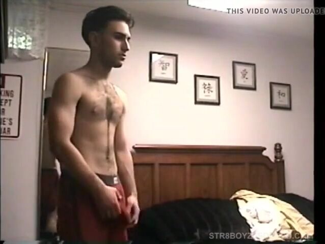 Vinnie sets up the camera and lets Paulie stroke in private. When he tries to re-enter the room and check out the action Paulie starts to freak and loses his erection. He gets back into it but soon lets Vinnie know he wants to sit down to finish, which allows him back in the room to adjust the camera. After a good hard workout he finally spills a load in his hand.