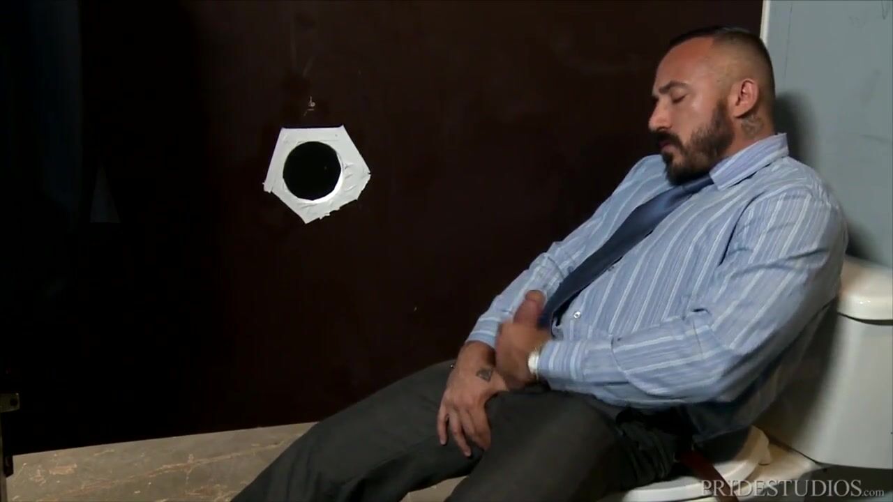 horny at work, trying to release some stress in the bathroom when dick appears in gloryhole