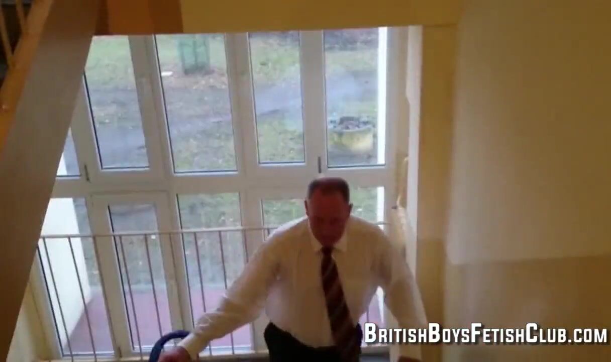 Conrad and Ricky are punished with the cane for mishbehaving by the headmaster. Conrad is first and gets all six, he then waits facing the wall for Ricky to get his six.