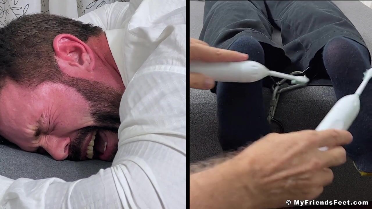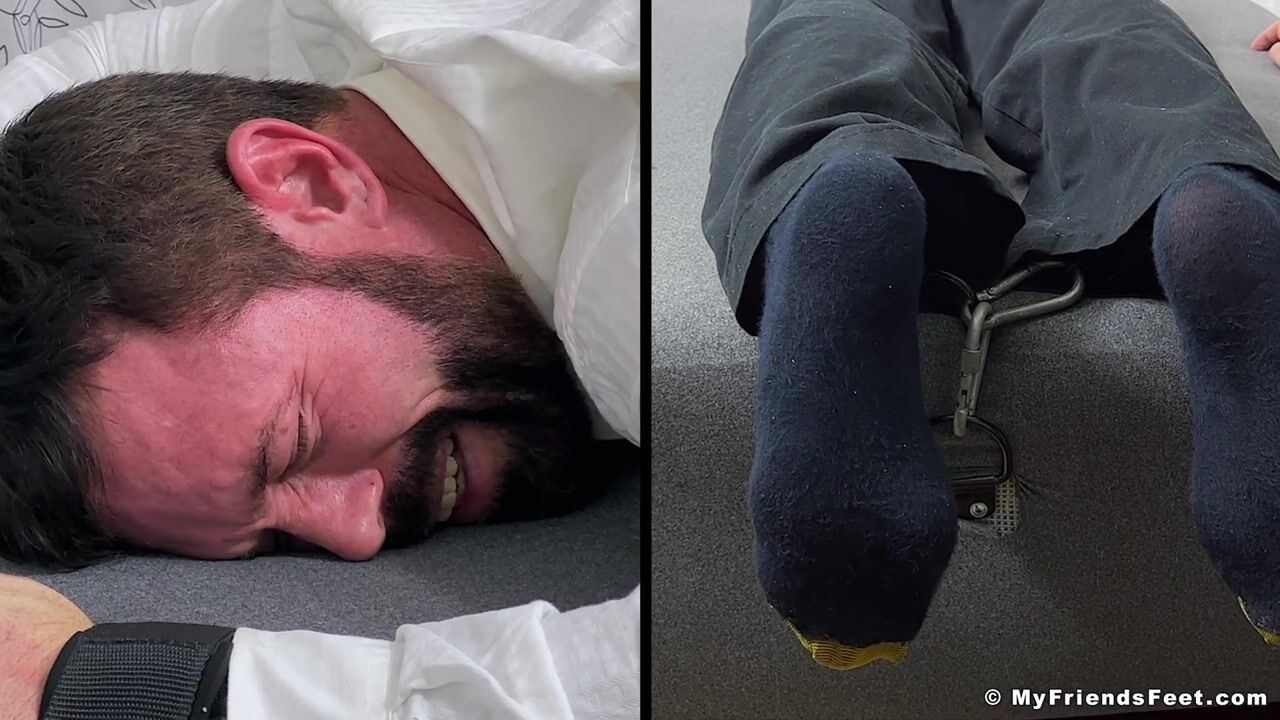 Tattooed hunk Joey cannot escape getting his size 12 feet tickled