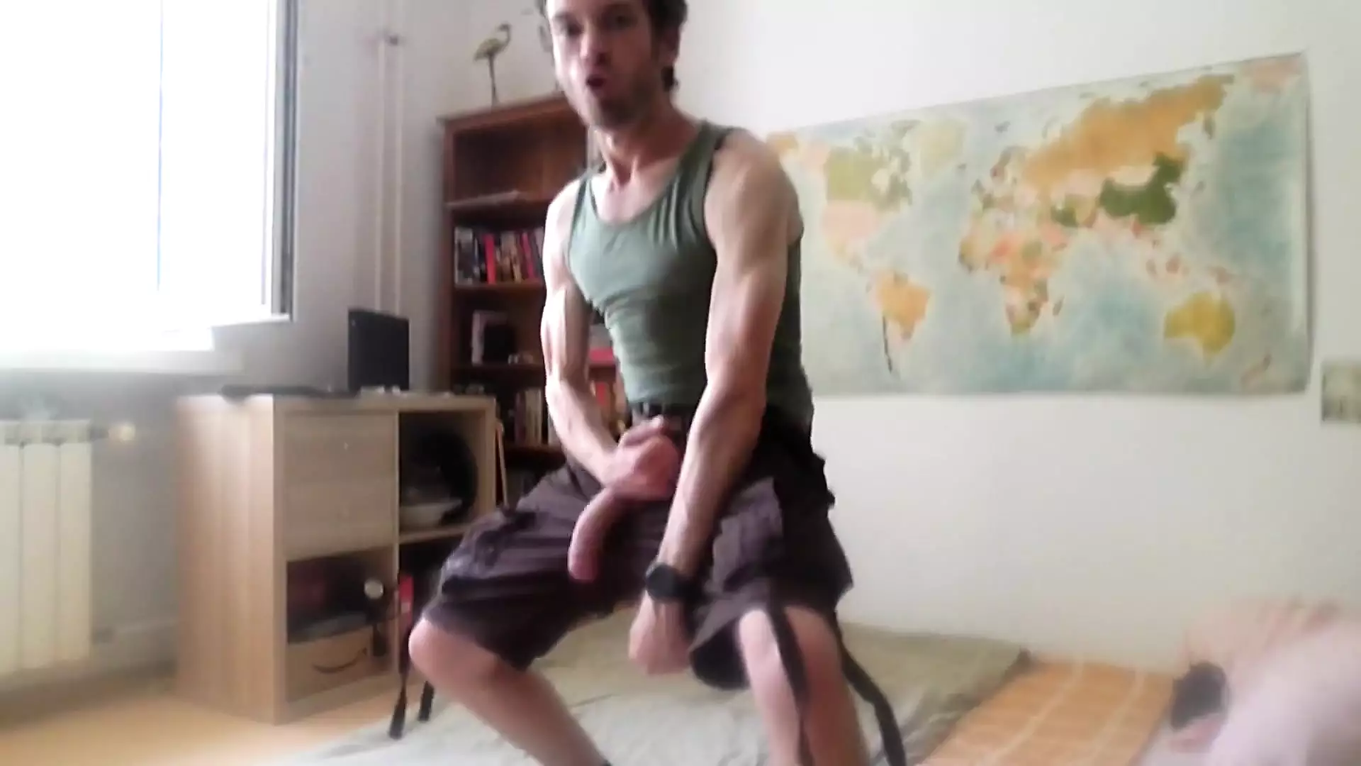 It's Laundry Day at Bator Bros Bating Cage and of course he left it off until the last minute, so all there was to wear was his signature gooning outfit: The green bator shirt and the brown cargo shorts, which are both too big and at the same time never manage to cover his cock and balls. I'll show you what I mean by that He even takes off his shirt in this one, showing off that typical bro-body, where you never know if he ever actually does any real exercise, or if he just intensely masturbates all day and night, flexing his cock and muscles like a goon. Usually, I like it better with the shirt on, feels more pervy that way. For some reason, who knows. What do you think: With or without a shirt? What else do you want to see that Goon and his extra long dick do? Between you and me? I'd like to watch the guy with the shirt and the guy without the shirt get it on and fuck already