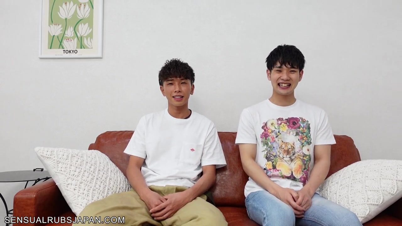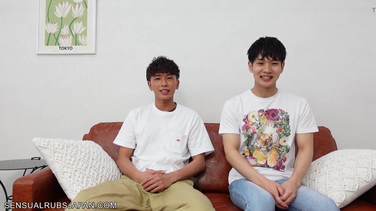 Cute and slim boys change into see-through bodysuits to give each other oil body massages