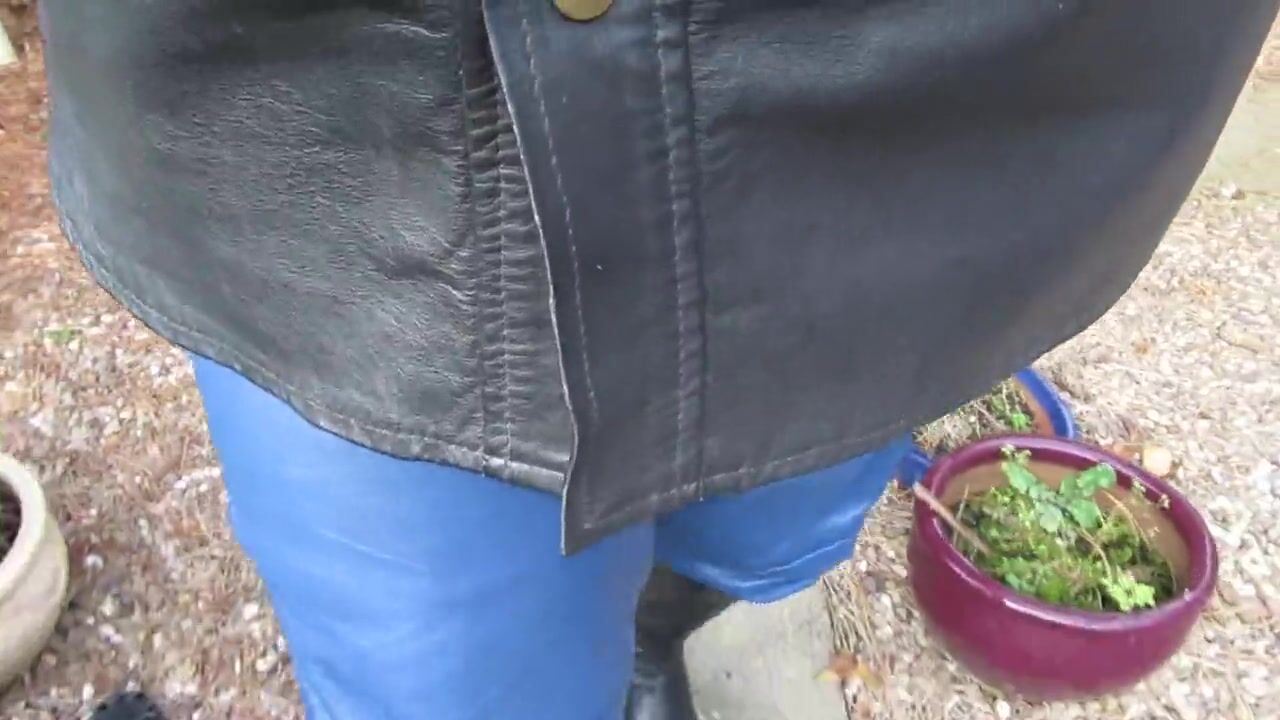 Wearing blue and black leather with knee high boots