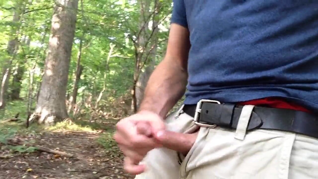 Public jerking in the forest.