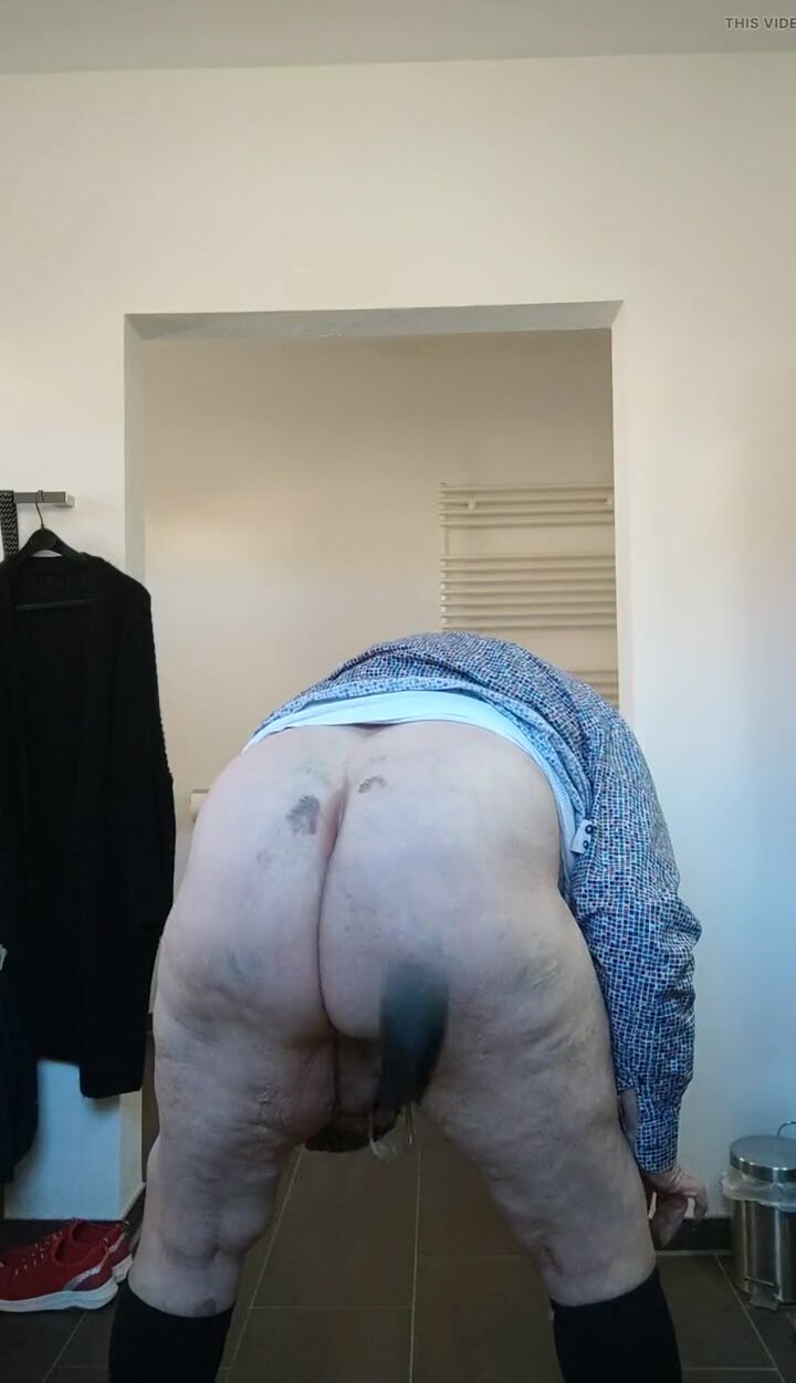 Wanted to change trousers, with the belt in my hand i had the urge to feel some pain. Therefore i had to beat my fat ass and cock!