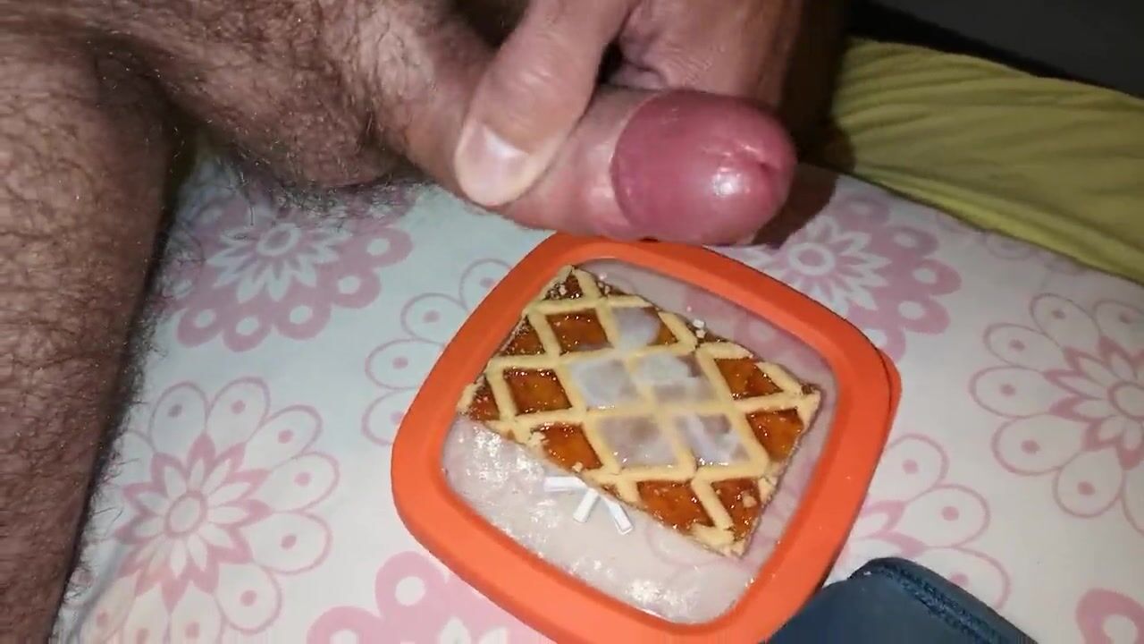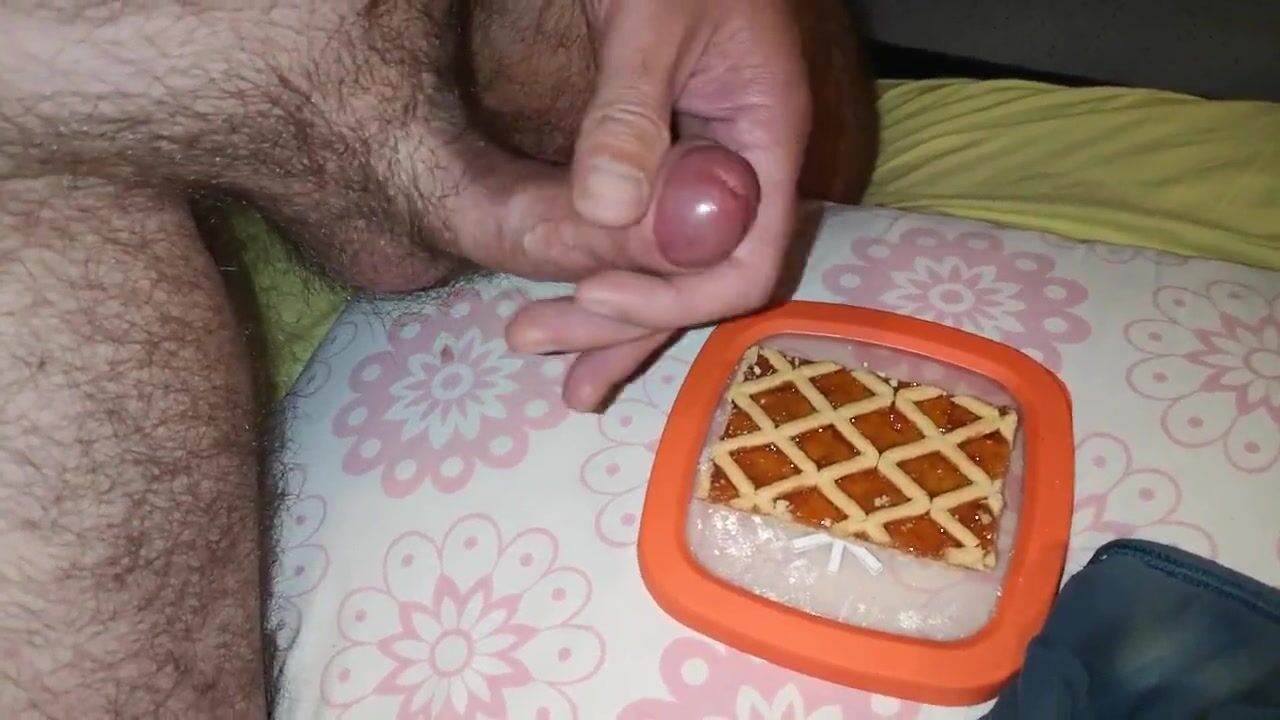 Cicci77 with Pedro makes a nice cumshot on a slice of cake for breakfast