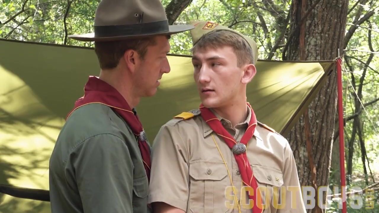 Sexy scoutmaster seduces a cute twink in forest