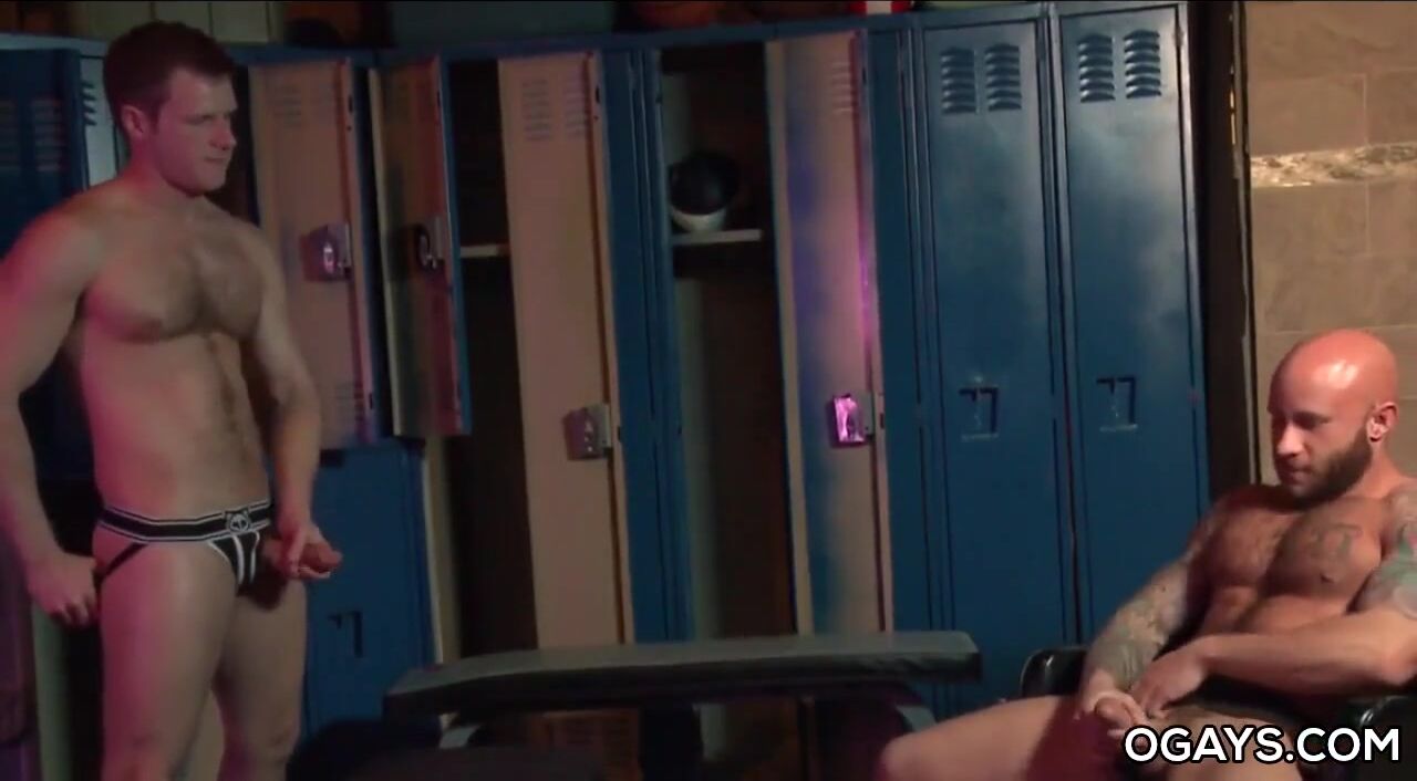 Drake holds the ball as Brian lowers himself deeper and deeper onto the ball. He then bounces up and down riding the dildo deep inside his eager ass.