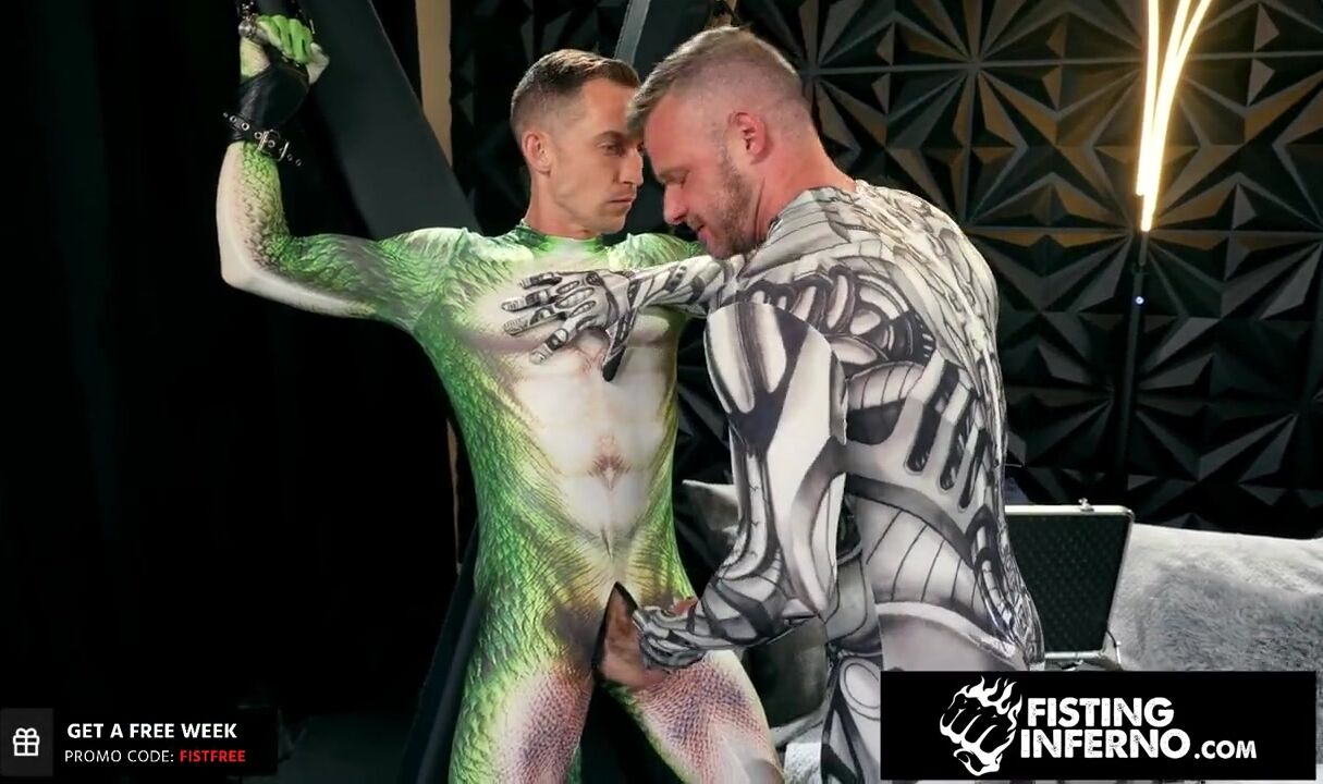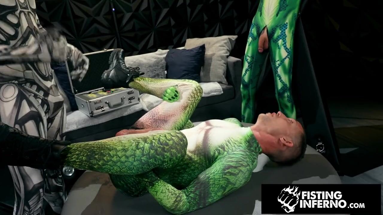 Villain Brian Bonds has hero's Ethan Sinns & Dylan Hawks chained to a wall. He takes turns with the two hunk heros, First sucking their cocks and then fisting their tight holes, ENJOY!!