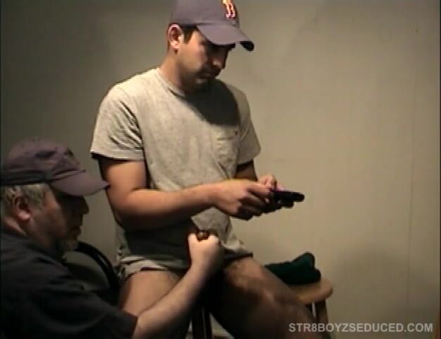 After spending some time with his family, straight roommate Zack escapes back to the apartment and quickly gets into a jerk off session. When I move in and grab his cock he gets rock hard in my hand, as I stroke his slippery stick. After I play with it a while Zack stands and I take him in my mouth. It doesn't take long before he explodes all over my face and tongue.
