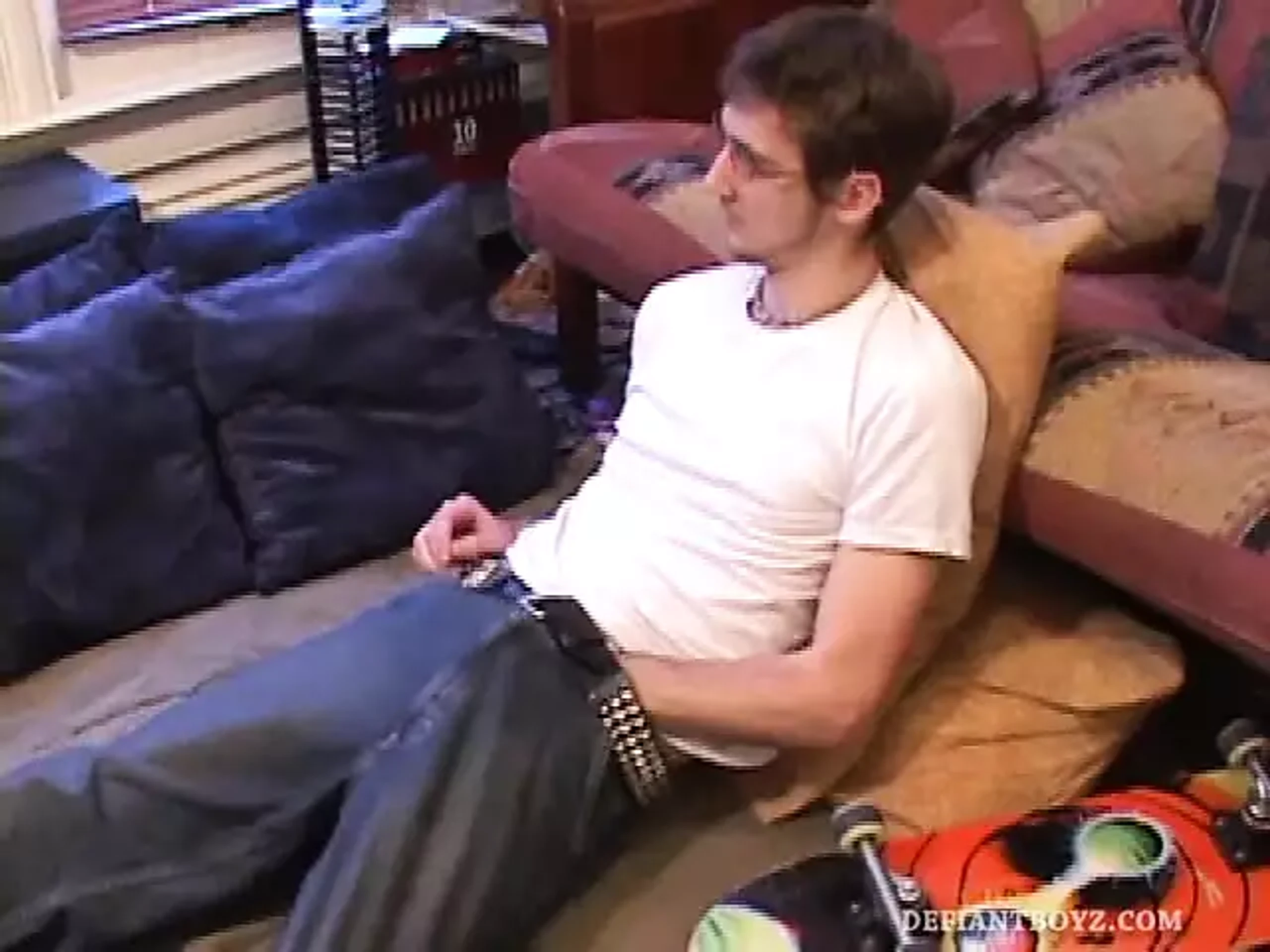 After a long hard day, Michael Whitewood is ready to unwind. So, after a quick skate around town, and a little food, Michael has one more urge that needs taking care of. As his porn video plays, Michael's hand finds it's way into his pants. Soon all of his clothes are off and he's sporting a massive hardon. That's when this lefty really gets going, as he strokes his dick until he can't hold back and pumps a big load of cum out on his belly.