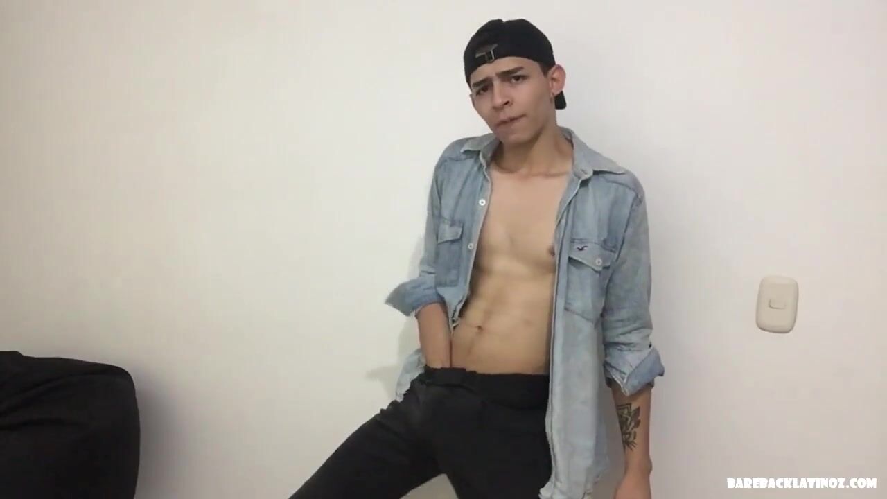 Paul is a skinny and smooth Latino, who starts his solo standing and teases us, as he strips naked. By the time the clothes are on the floor, Paul is fingering his ass and working up a boner. Then he shoves a dildo up his butt, before stroking his big cock with a jerk off toy. The standing stroke show finally ends when Paul reaches climax and cums on his fingers.