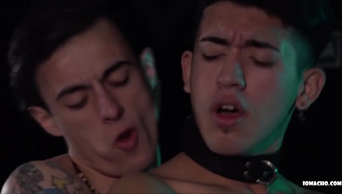 Shirtless Sly gets Chase stripped down to his jock strap, before putting a collar and leash on him. Then he gets naked, so Chase can suck on his big dick. All boned up, Sly makes Chase hop on his cock for a raw ride. Then he takes the boy from behind, while both are standing. One final round of bareback fucking, has Chase bent over for a deep pounding, before the two release their cum loads.