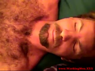 Hairy straight redneck gets facial treatment by his parole officer