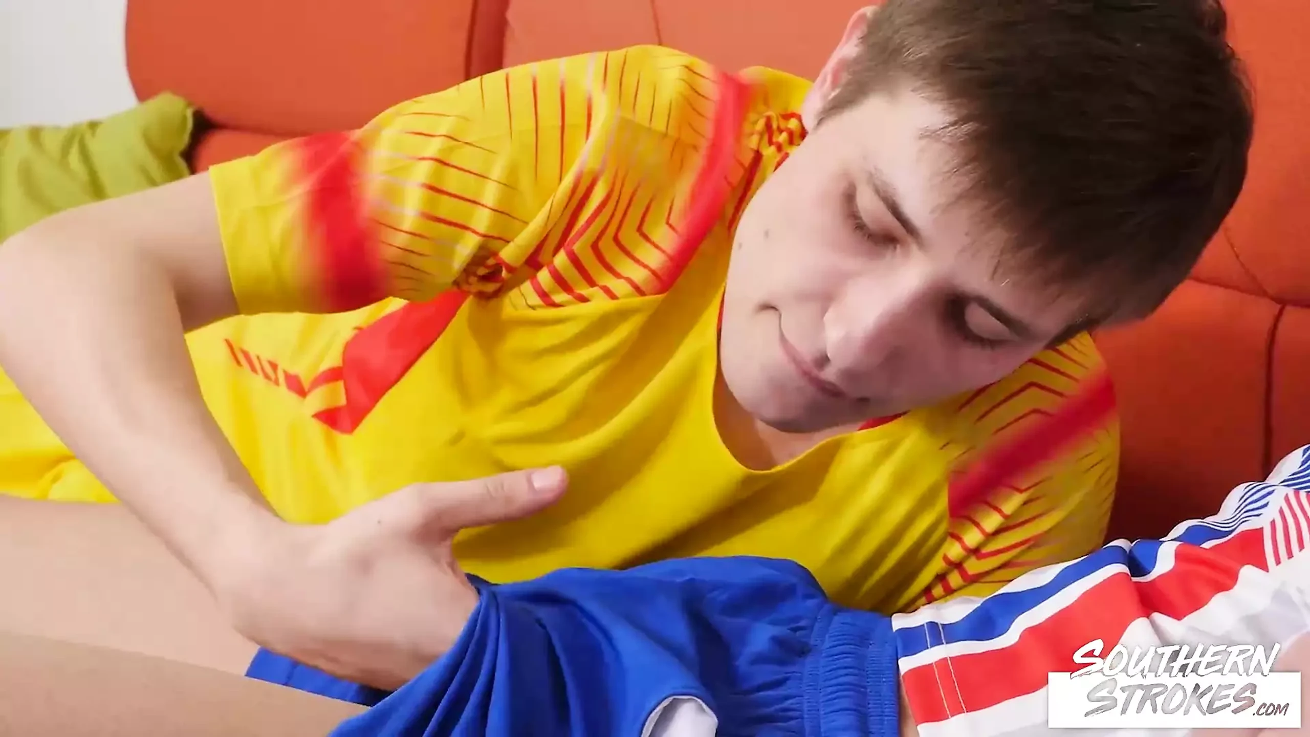 Cute twink Evan Novak had no problem holding back and soon was nuts deep in Carlos Costa tight hole as they fucked on the couch.
